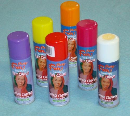 Speciální sprej s barvou. Používá se k dekoraci vlasů a těla na plesy, karnevaly, diskotéky, show a všude jinde, kde chcete mít vlasy nebo kůži krátkodobě barevné. Barvy se dají kombinovat. Obsah 125 ml.