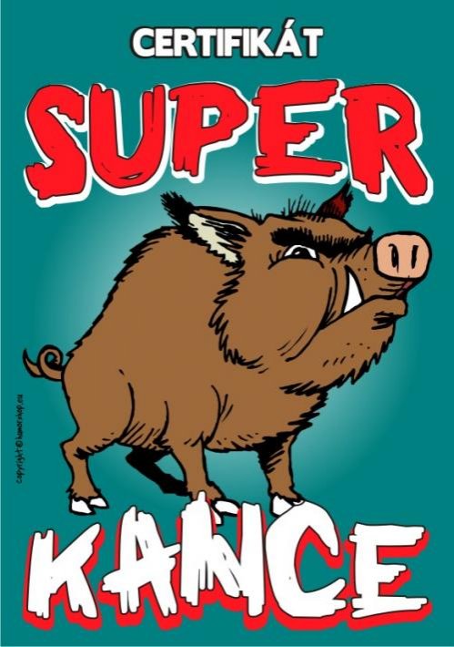 Hlavní stranaZábavné předměty průkazy,cedulky,magnety Certifikát super kance