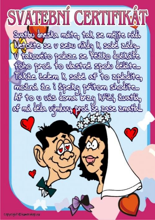 Hlavní stranaZábavné předměty průkazy,cedulky,magnety Certifikát Svatební certifikát