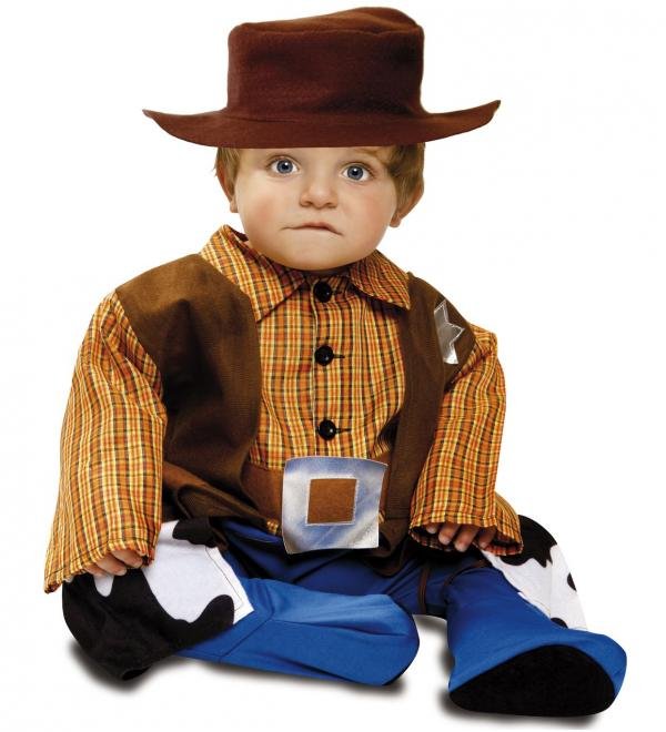 Součástí kostýmu je overal a klobouk. Vrchní díl overalu je žluto-oranžovo-černá károvaná košile s dlouhým rukávem a límečkem doplněná černými knoflíky. Ke košili je našitá hnědá vesta s našitou šerifskou hvězdou a hnědý pásek s velkou stříbrnou látkovou sponou. Spodní díl overalu tvoří modré kalhoty s chráničemi nohavic v bílé barvě s černými fleky. Chrániče mají gumu, která se dává kolem nožičky. Ke kostýmu patří také hnědý klobouk.