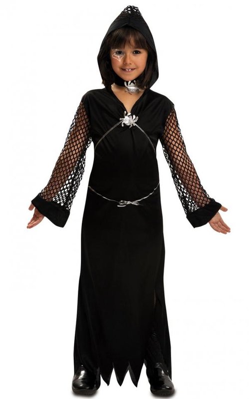 Součástí kostýmu jsou dlouhé černé šaty s kapucí a rozparkem na levé straně. Rukávy a vršek kapuce jsou s děrované látky. Přes hrudník a kolem pasu jsou šaty zdobeny stříbrnou stužkou a pavoukem. Obojek je černý se stříbrným pavoukem.