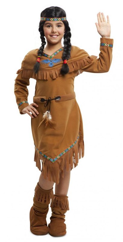 Součástí kostýmu indiánky je čelenka, šaty, návleky na boty a pásek.