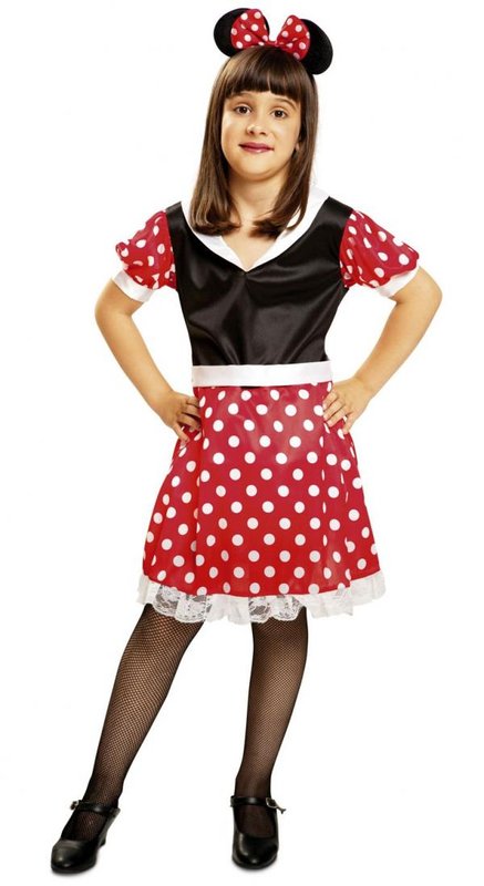 Součástí kostýmu jsou šaty, pásek a čelenka. Krátké šaty s červenobílou puntíkovanou sukní a krátkými rukávy, které mají široký bílý lem. Spodní lem sukně je z bílé krajky. Vrchní díl šatů je černý s bíle lemovaným výstřihem. Kostým je doplněn bílým páskem a čelenkou s myšíma ušima a puntíkovanou mašlí.