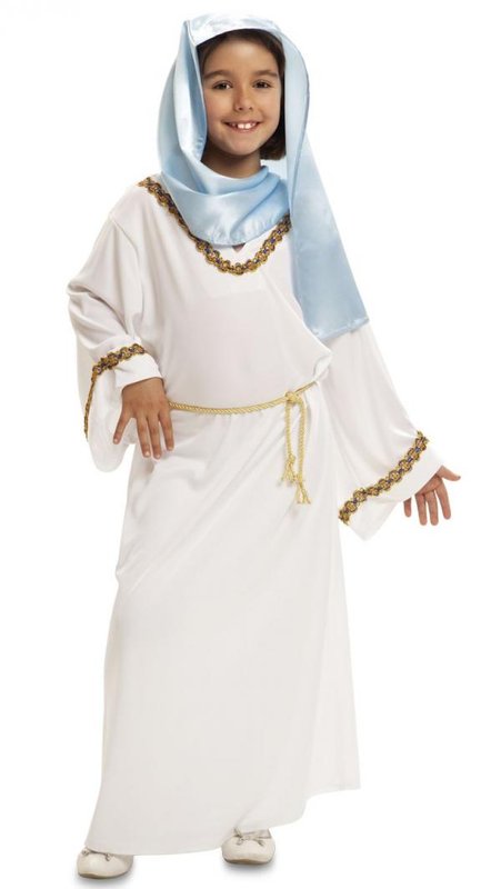 Součástí kostýmu Panna Marie je dlouhá bílá róba s dlouhými širokými rukávy. U krku a zápěstí je kostým zdoben modrozlatou krajkovou stuhou. Róba je doplněná zlatým šňůrovým páskem a světlemodrým šátkem na hlavu.