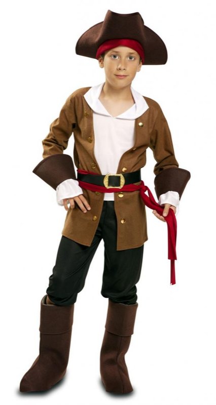 Součástí kostýmu je klobouk, košile, žaket, šerpa, kalhoty a návleky na boty. Bílá košile bez rukávů s límcem. Hnědý žaket se zlatými knoflíky je doplněn velkými manžetami, ke kterým je přišit bílý volán. Černé kalhoty a hnědé návleky na boty. Součástí kostýmu je červená šerpa a černý pásek se zlatou sponou. Ke kostýmu patří hnědý klobouk s červenou mašlí.