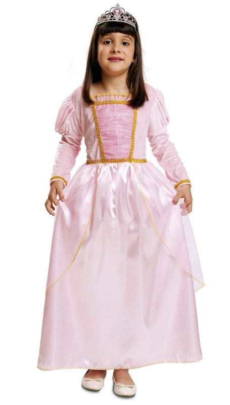 Součástí kostýmu jsou šaty. Světlerůžové dlouhé šaty s dlouhými rukávy, které jsou v horní části nabírané. Na hrudníku je dvojitá vsadka. Spodní vrstva je z růžové nabírané látky, horní vrstva je z průhledné lesklé růžové látky. Ze stejné látky je i malý zlatě lemovaný volánek na výstřihu a vrchní kratší sukně taktéž lemovaná zlatě. Kolem výstřihu, vsadky, pasu a rukávů je zlaté krajkové lemování.