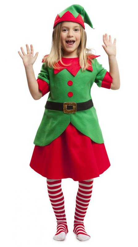 Součástí dívčího kostýmu skřítka je čepice, žaket s páskem, sukně a kalhoty.