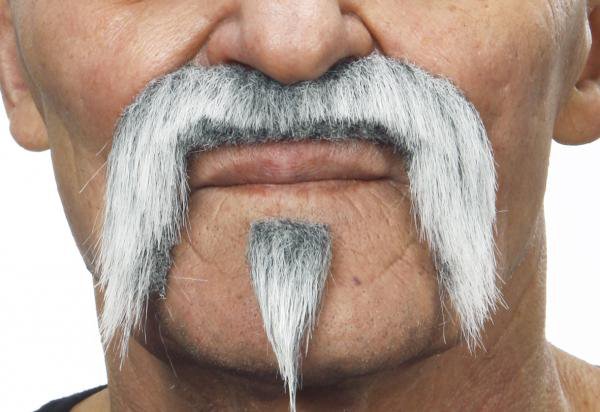 Hlavní stranaDoplňky na karneval vousy - kníry Knír zahnutý dolů s bradkou šedý