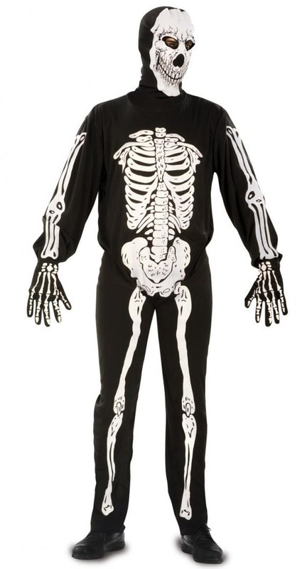 Součástí kostýmu je černý overal s kapucí a maskou lebky. Celý overal má potisk kostí. Černé rukavice také s motivem kostí.