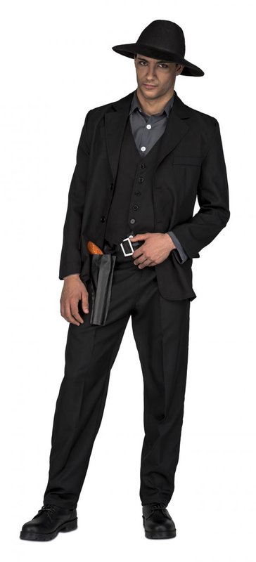 Součástí kostýmu je sako, vesta, klahoty, košile a pásek s pouzdrem na pistoli.