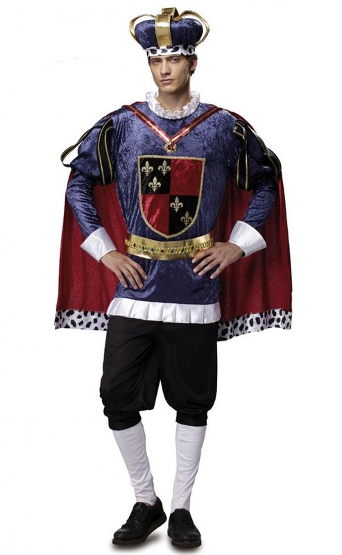 Součástí kostýmu je košile s pláštěm, kalhoty, koruna a pásek. Dlouhá tmavomodrá sametová košile s dlouhými, v horní části nabíranými, rukávy. Vrchní část rukávů je zdobena černými zlatě lemovanými pruhy. Rukávy mají široké bílé manžety. Kolem krku je malý bílý volánek a ozdobná červenozlatá stuha se zlatou broží s červeným kamenem. Spodní lem košile je bílý a skládaný. Na hrudníku je královský zlatě lemovaný kostkovaný černočervený znak se zlatými ornamenty. Ke košili je přišit červený plášť, který má spodní lem skvrnitý bíločerný. Stejný lem má i tmavomodrá sametová královská koruna se zlatými pruhy. Ke kostýmu dále patří kalhoty, které jsou ve vrchní části černé široké a od kolen dolů bílé a úzké. Kostým doplňuje zlatý pásek s barevnými kamínky.