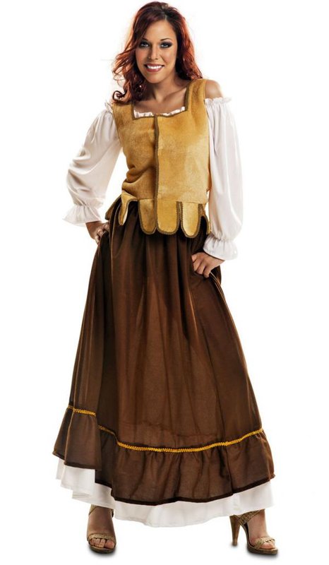 Součástí kostýmu je košile, vesta a sukně. Bílá košile s 3/4 spadenými rukávy má kolem celého výstřihu malý volánek. Žlutá vesta je lemovaná hnědou stuhou. Proužek stuhy ji i svisle na hrudníku. Spodní lem vesty je nastříhaný do obloukových pruhů látky. Kostým doplňuje široká dlouhá tmavohnědá sukně s hnědým a bílým volánem a ozdobným žlutým proužkem stuhy.