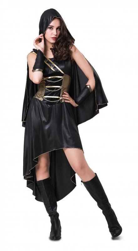 Součástí kostýmu jsou šaty s pláštěm a chrániče rukou.
