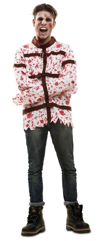 Součástí kostýmu Halloween je svěrací kazajka. Bílá svěrací kazajka je celá s krvavými fleky. Doplněná je tmavohnědými popruhy vedoucí kolem paží, dva kolem hrudníku a jeden kolem boků. Svislý popruh vede i kolmo středem hrudníku. Velmi dlouhé rukávy mají na koncích hnědou stuhu na zavázání za zády. Popruhy jsou doplněny sponami. Kolem krku je hnědý stojací límec. Spodní lem je nastříhaný do cípů.