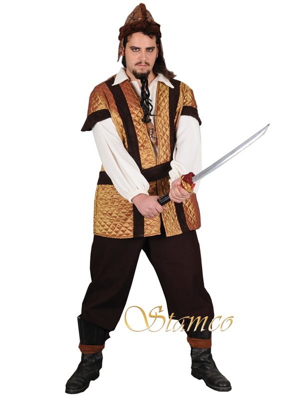 Součástí kostýmu je dlouhá vesta, košile, kalhoty, pásek, čepice. Velikost 46-52. Materiál: polyester. Divadelní kvalita.