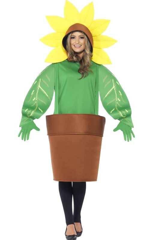 Součástí kostýmu je top s kapucí, květináč a rukavice. Zelený top s dlouhými širokými rukávy, které mají tvar a design listu. K topu je přišita hnědá kapuce, kolem které jsou přišity žluté okvětní lístky slunečnice. Na zelených kšandách je přišit hnědý květináč z pevné látky. Kostým doplňují zelené rukavice.