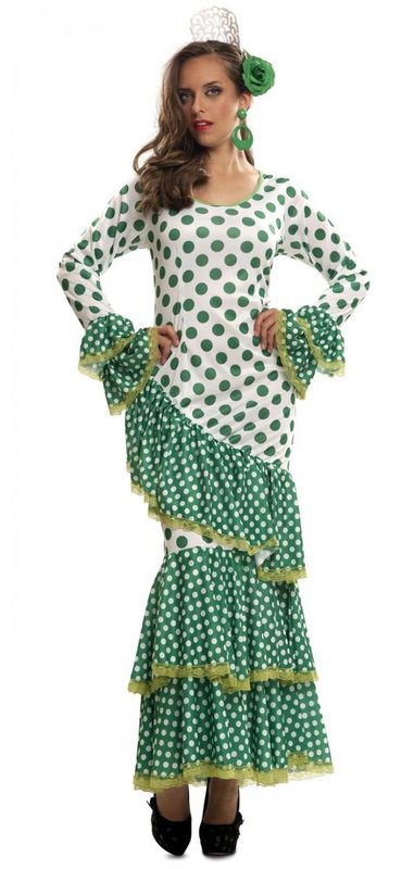 Součástí kostýmu jsou šaty. Dlouhé bílé úzké šaty mají velké zelené puntíky. Ve spodní části rukávů mají dva zelené volány s bílými puntíky, lemované zelenou průhlednou krajkou. Ve stejném stylu jsou i dva velké volány ve spodní části sukně a šikmý volán, který vede od pravého boku k levému kolenu.