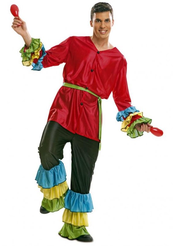 Součástí kostýmu je košile a kalhoty. Červená dlouhá košile s dlouhým rukávem a černými knoflíky je doplněná zeleným páskem na zavázání. Černé kalhoty i rukávy mají modrý, žlutý a zelený volán.
