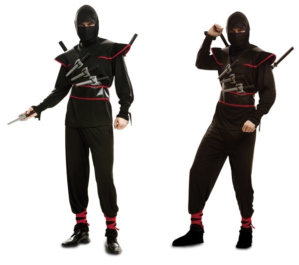 Součástí kostýmu je kapuce, maska, košile, pásek s pouzdry a kalhoty. Černé tričko s dlouhými rukávy, které mají kolem zápěstí šňůrky na omotání. Na ramenou jsou černé červeně lemované výložky. Kolem pasu je černý červeně lemovaný pásek. Kostým doplňuje černá kapuce, černá maska, černé dlouhé kalhoty s červenými stužkami na omotání holení a pásky přes hrudník s úchyty na nože a šavle. ( Nože a šavle nejsou součástí kostýmu )