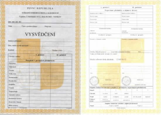 Máte dobrého kamaráda, který se s vámi rád napije. Oceňte jeho chlastání vysvědčením jako ve škole. Vyplňte jméno, příjmení a oznámkujte předměty jako Pivní jazyk, Vinný jazyk, Kriglistika apod. Dále nepovinné předměty jako Ponocování, Šavlový tanec a další. A celkové hodnocení? Jednoduše: Propil(a) s vyznamenáním - Propil(a) - Nepropil. A ná závěr nesmí chybět poznámka: Poblití zakázáno. Formát A4 - oboustranný potisk i s vodotiskem státního znaku Pivní republiky. Dodáváno včetně obalu.