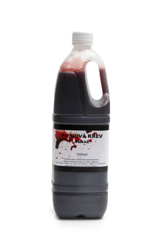 Při schnutí tmavne jako skutečná krev, vytváří strukturu krve. Krev není toxická obsah: 1000 ml Složení: destilovaná voda, E420, R1401, CL 73015, Cl 14720, Cl 15985, Cl 19140, E202