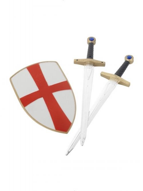 Sada obsahuje 2x meč 50 cm a štít 20x30 cm.