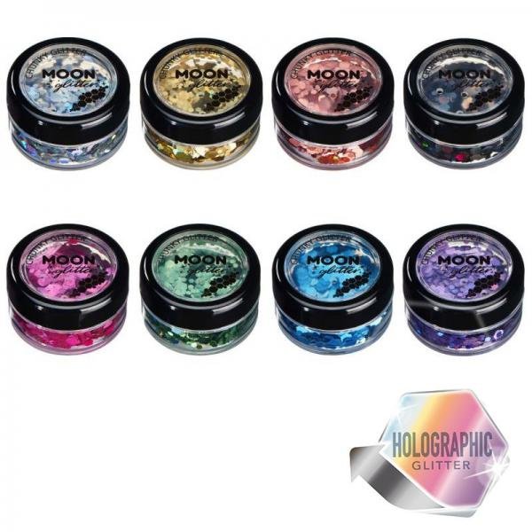 Připravte se na festival s našimi holografickými robustními třpytkami. Živé barvy, které se třpytí, když se pohybujete. Naše třpytky jsou kosmetické třídy, takže se dokonale bezpečně nanášejí na obličej, vlasy a tělo a lze je snadno odstranit pouze vodou. Dodáváno v uzavíratelném kalíšku ve velikosti do kapsy. Použijte třpyt, který doporučujeme použít Moon Glitter Fix Gel, Lepidlo na rty, Vlasové nebo Nail Lepidlo.